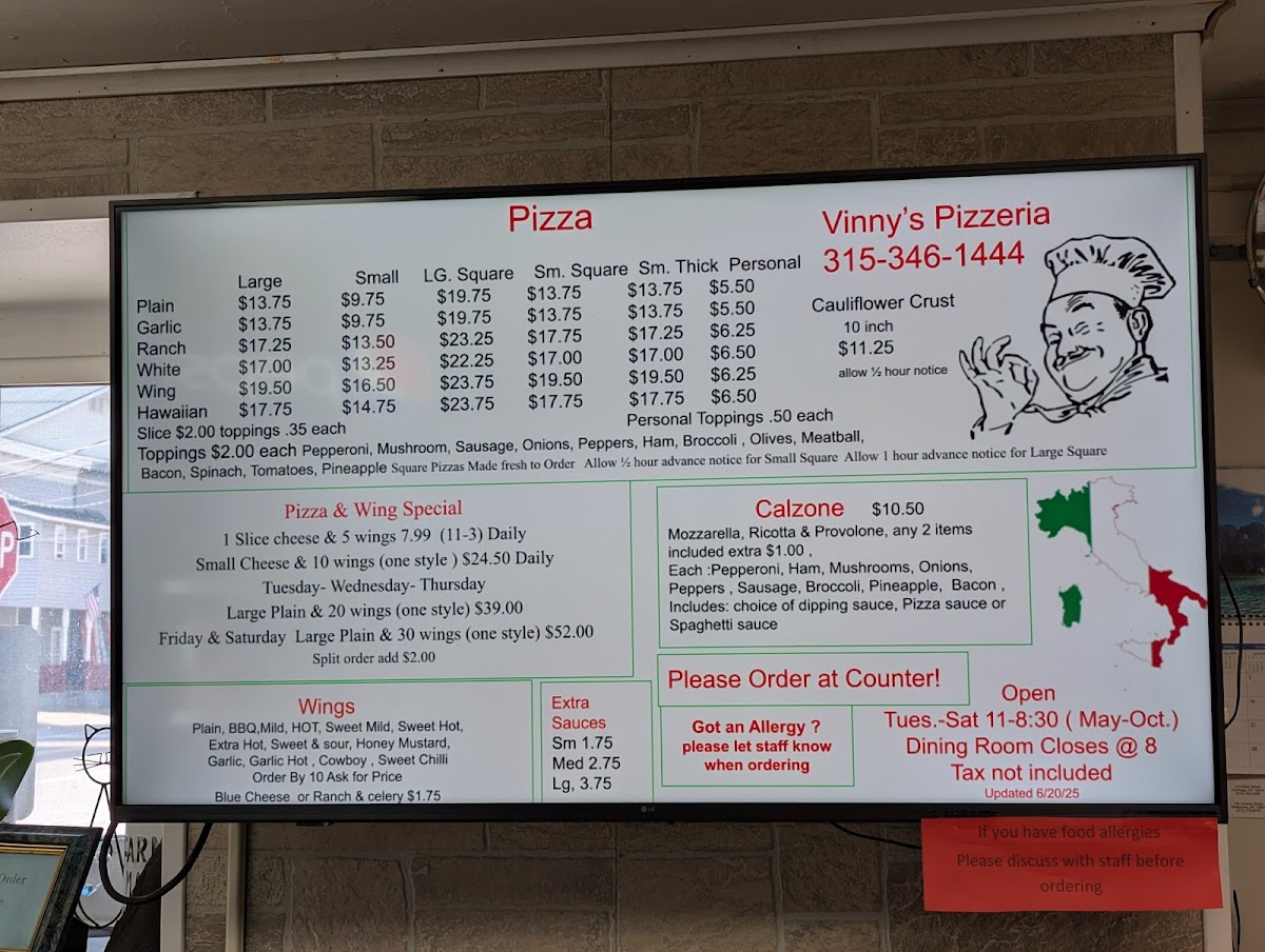 Don’t just take my word for it; visit Vinny's Pizzeria at 9786 NY-812 or call them at +1 315-346-1444 to experience this edible masterpiece for yourself!